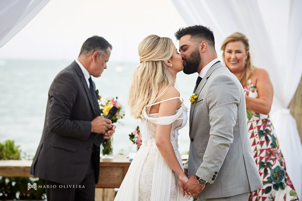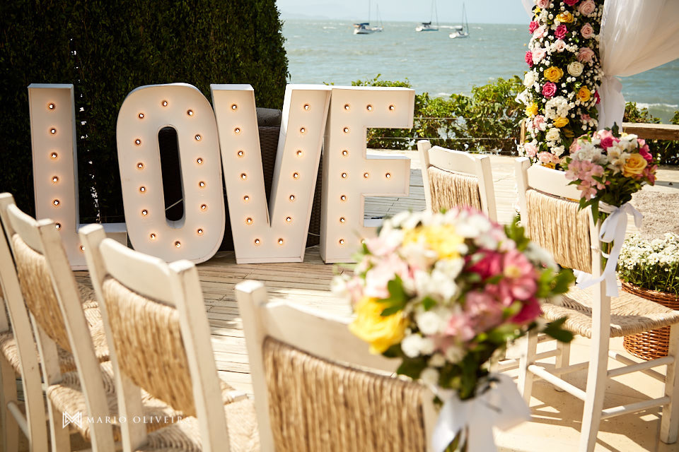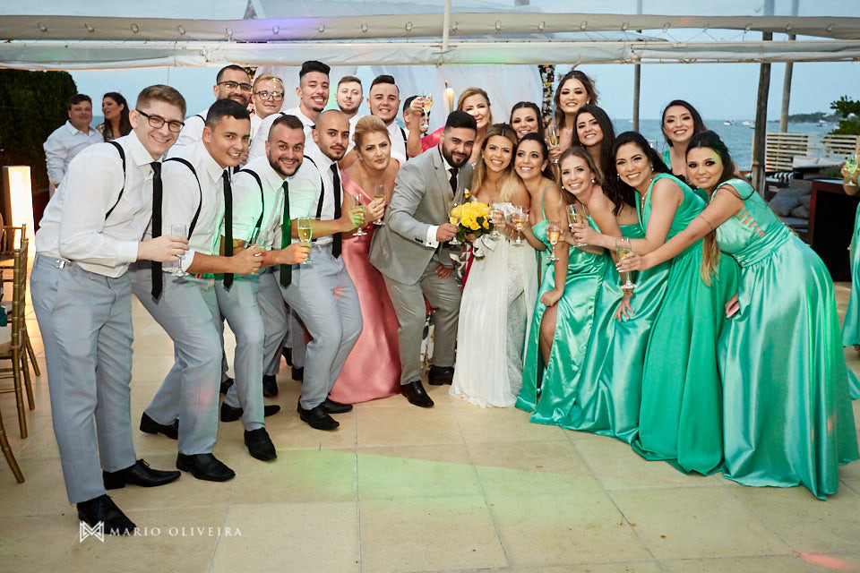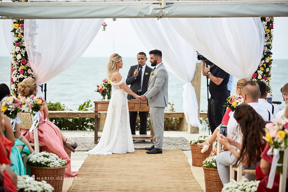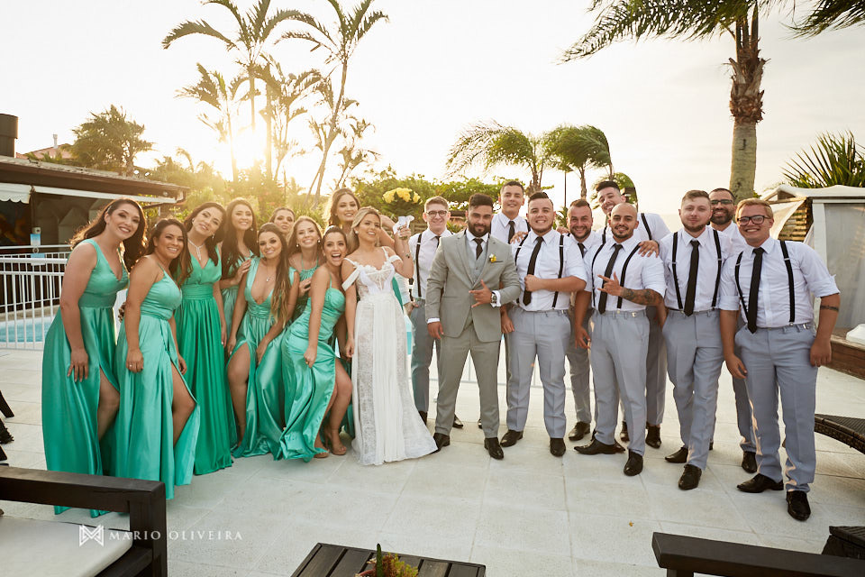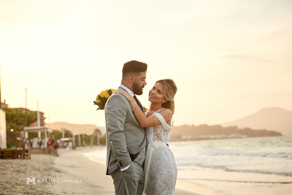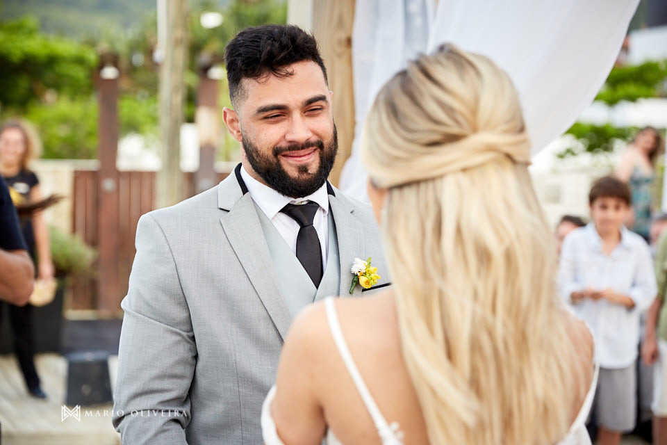 O cenário não podia ser mais especial: um agradável dia de sol na beira da praia de Jurerê. Parentes e amigos vindos de vários estados do país se reuniram para desejar muitas felicidades e bençãos ao casal!