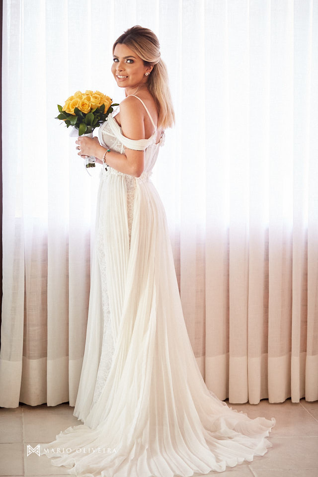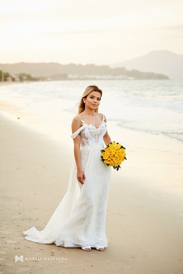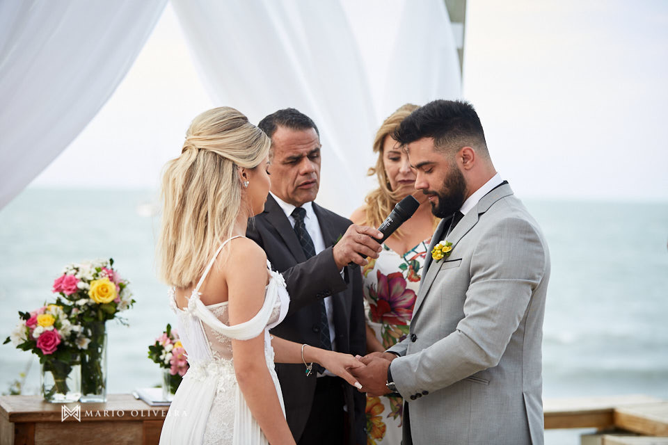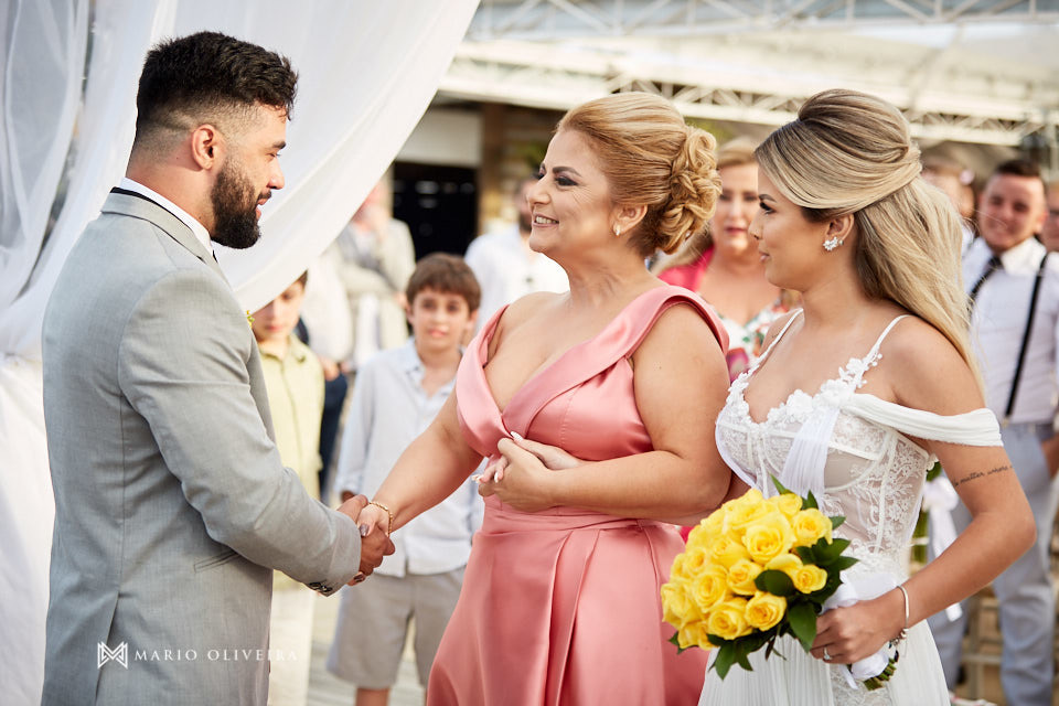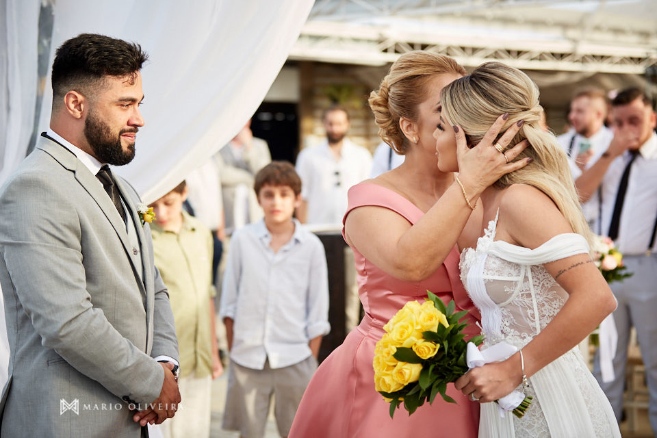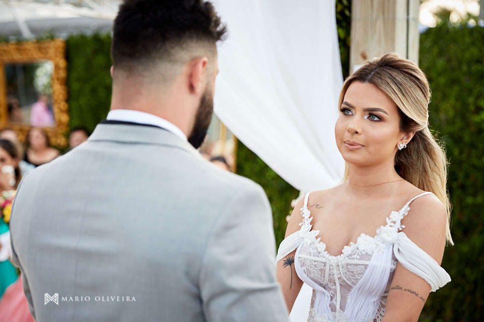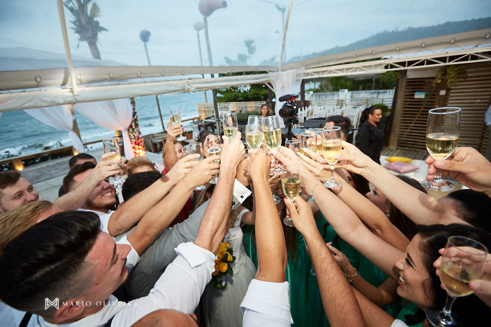 O cenário não podia ser mais especial: um agradável dia de sol na beira da praia de Jurerê. Parentes e amigos vindos de vários estados do país se reuniram para desejar muitas felicidades e bençãos ao casal!